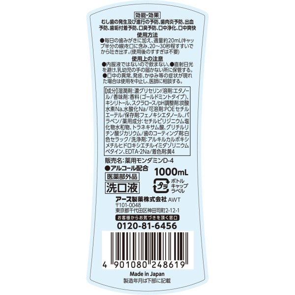 몬다민 프리미엄 케어 골드 민트 마우스워시 1000ml 아스제약 > 구취 예방