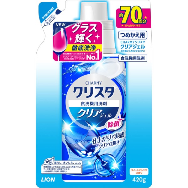 CHARMY 크리스타 식세기용 세제 클리어 젤 리필 식기용 세제 420g 라이온 > 식기세척기용