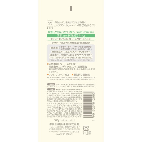 카우브랜드 무첨가 트리트먼트 촉촉 케어 180g 규슈 비누 > 카우 브랜드