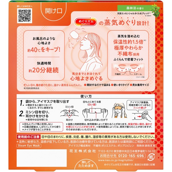 메구리즘 증기로 눈 마스크 삼림욕향 5매 카오 > 온열 용구