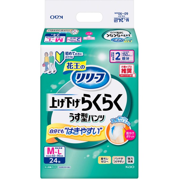 리리프 팬츠 타입 올리기 내리기 편한 얇은 팬츠 2회분 M-L 24매 카오 > 슬림형