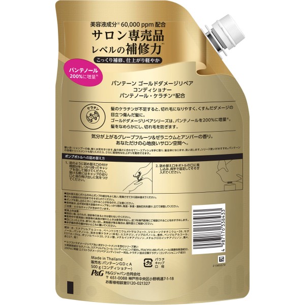 판텐 골드 데미지 리페어 컨디셔너 리필 초특대 500g P&G 재팬 > 팬틴
