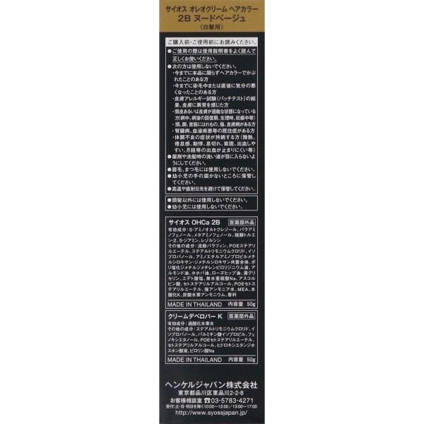 사이오스 올레오 크림 헤어 컬러 2B 누드 베이지 50g+50g 헨켈 재팬