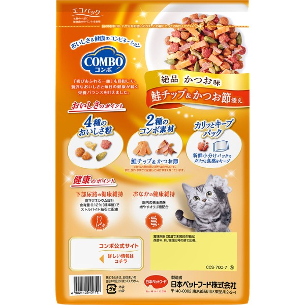 콤보 캣 가다랑어맛·연어 칩·가다랑어포 곁들임 700g 일본 펫 푸드 > 구르메 (성묘용)