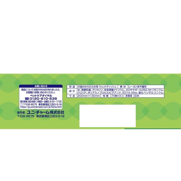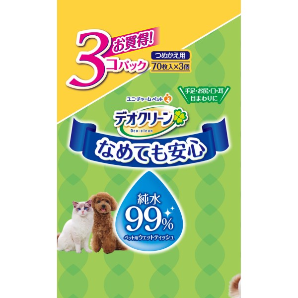 데오 클린 순수 99% 웨트 티슈 리필 70매 3개 팩 유니참 펫케어