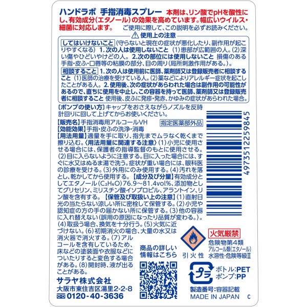 핸드라보 손가락 소독 스프레이 VH 300ml 사라야 > 기타