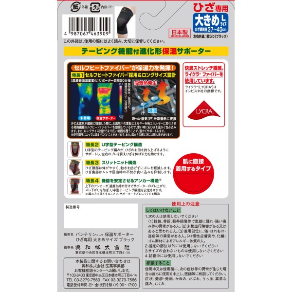 반테린코아 보온 서포터 무릎 전용 대사이즈 1개입 코와 > 무릎