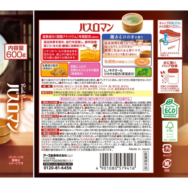 바스로만 뿌연 욕탕 히노키향 히노키 입욕제 피로 해소 600g 아스제약 > 일반 약용(온욕) 바스로만