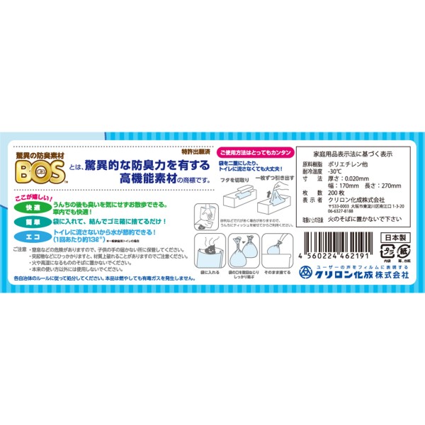 변 냄새 안 나는 봉투 BOS 펫용 박스형 SS 사이즈 파란색 200매 크리론 화성 > 기타