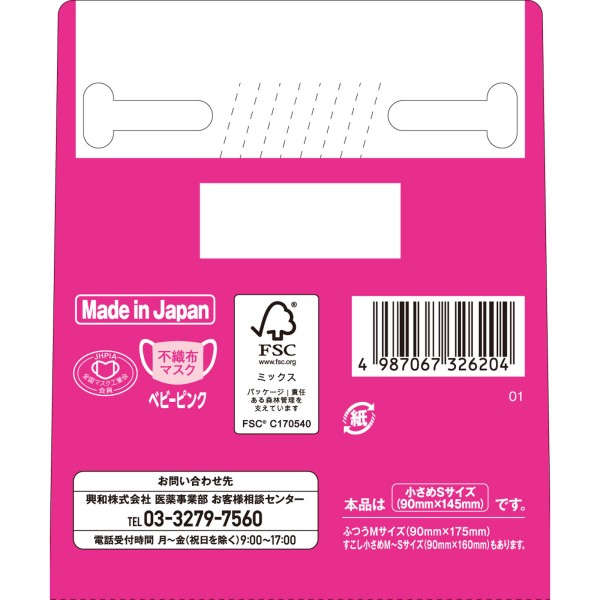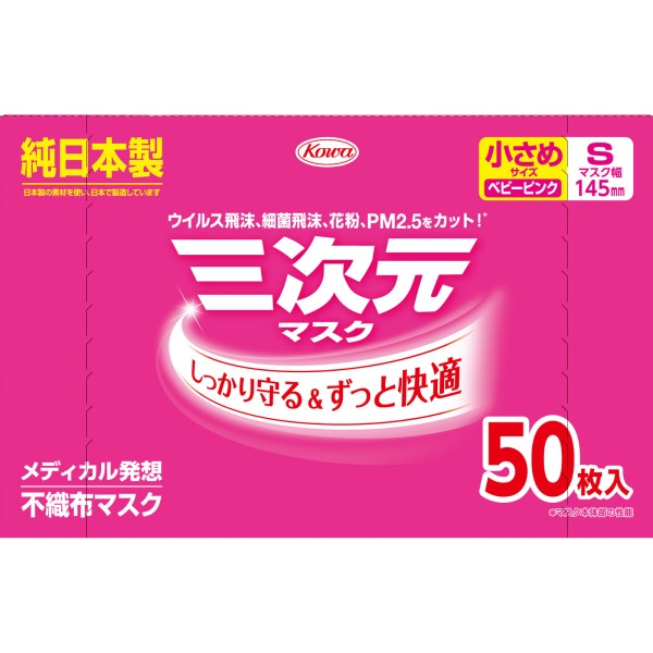 3차원 마스크 조금 소사이즈 S 핑크 50매 코와 > 대용량