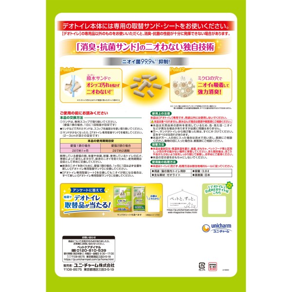 데오 화장실 소취·항균 샌드 익숙해지기 쉬운 소립 3.8L 유니참 펫케어 > 시스템 화장실용