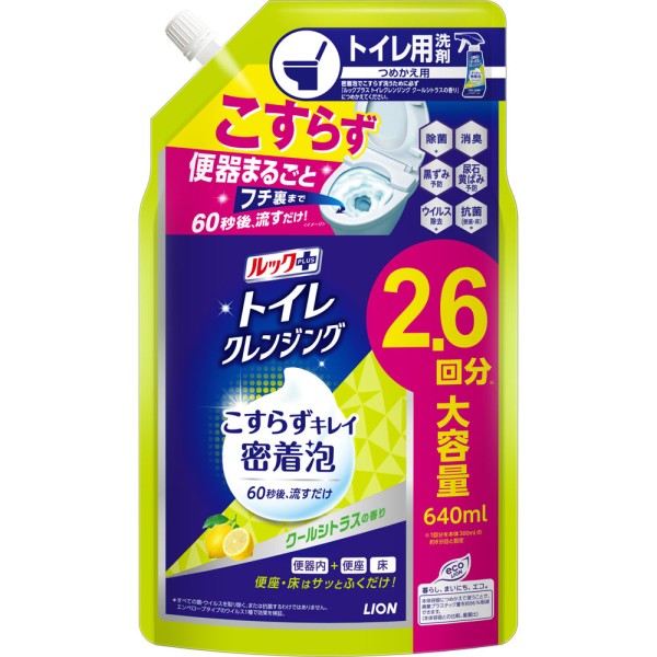 룩 플러스 화장실 클렌징 화장실 청소 폼 문지르지 않는 세제 리필 대용량 쿨 시트러스향 640ml 라이온 > 안심(중성) 타입