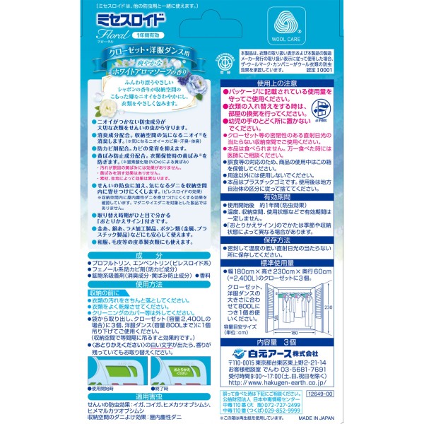 미세스 로이드 플로럴 클로젯 양복장용 WA 3개 시라모토 아스 > 향기 1년용