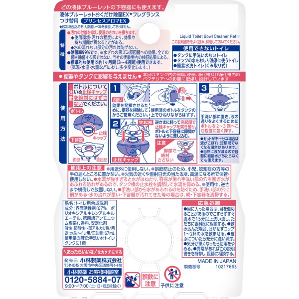 리퀴드 블루렛 두는 것만으로 제균 EX 프레그런스 교체 프린세스 아로마 EX 67ml 고바야시제약 > 변기 탱크용 액체