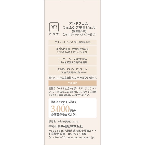 앤드 펨 펨케어 미백 젤 30g 규슈 비누 > 여성 청결제