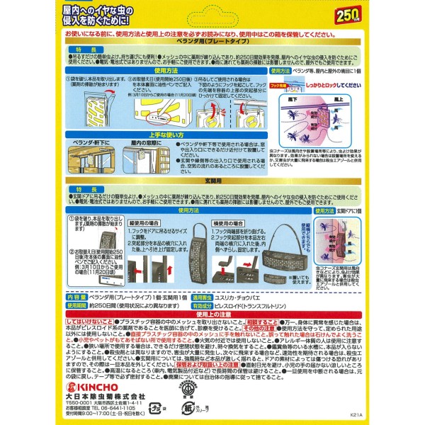 벌레 코너스 베란다용+현관용 250일용 무취 감사 페어 팩 플레이트 1개·현관 1개 다이니폰 제충국 > 걸이형·현관·방충망