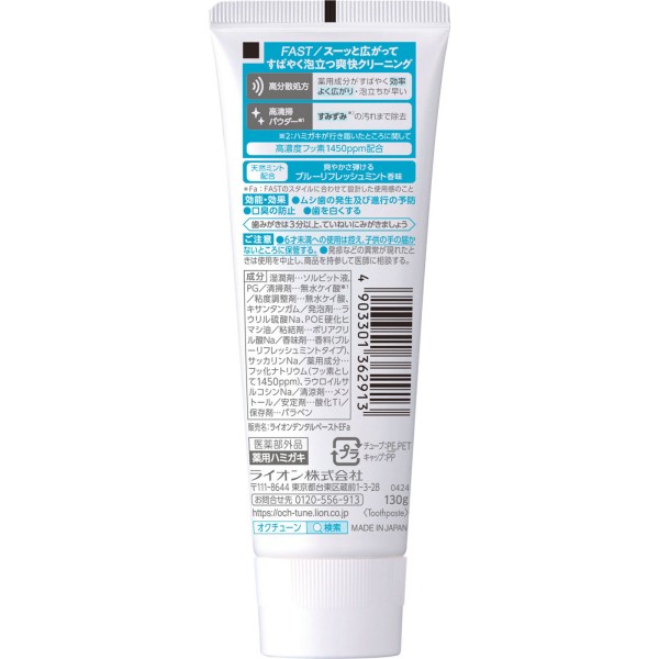 OCH-TUNE 치약 FAST 블루 리프레쉬 민트 130g 라이온 > 구취 예방
