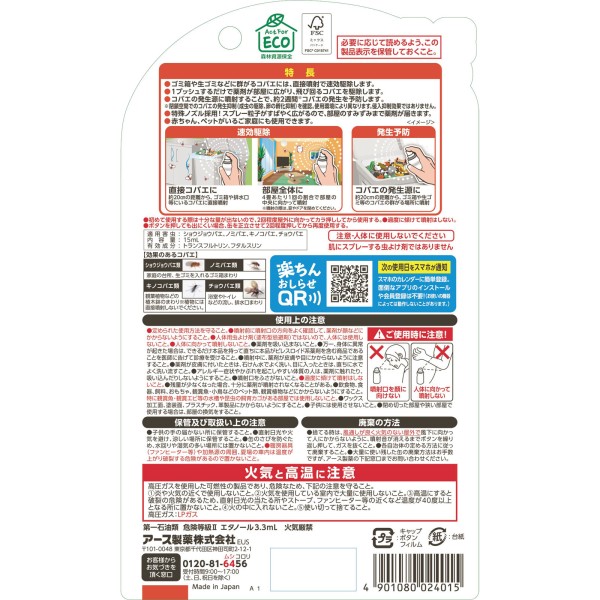 누르기만 해도 되는 날파리 어스 스프레이 60회분 쓰레기통 싱크대 등 날파리 대책 쇼우죠우 파리도 퇴치 15ml 아스제약 > 스프레이