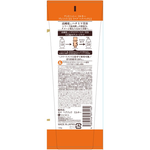앤드 허니 밀키 프레셔스 EX 리페어 헤어 팩 1.5 130g 주식회사 비클레아 > 앤드허니