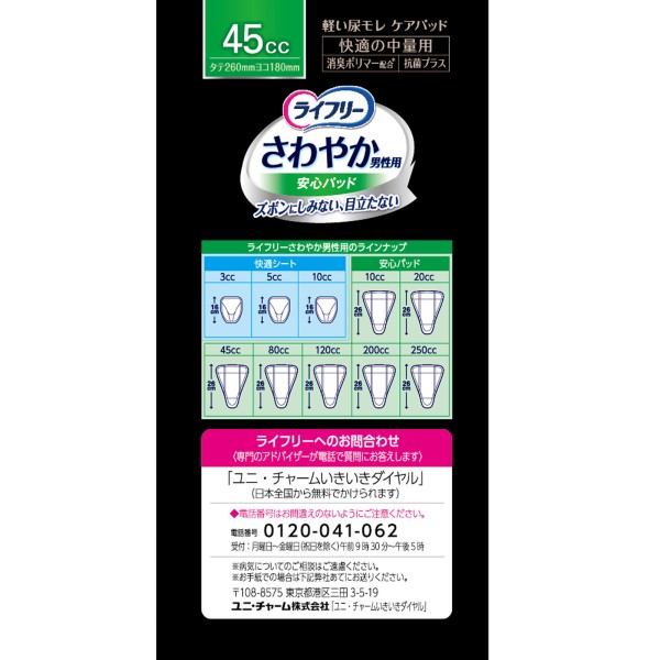 라이프리 상쾌한 남성용 안심 패드 남성용 경실금 패드 45cc 쾌적한 중량용 26cm 20매 유니참 > 패드 (중량)
