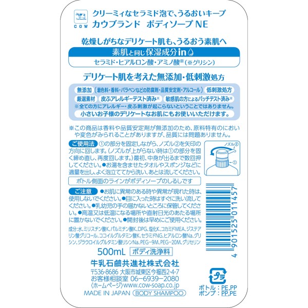카우 브랜드 무첨가 바디소프 펌프 500ml 우유비누 쿄진샤 > 범용(기타)