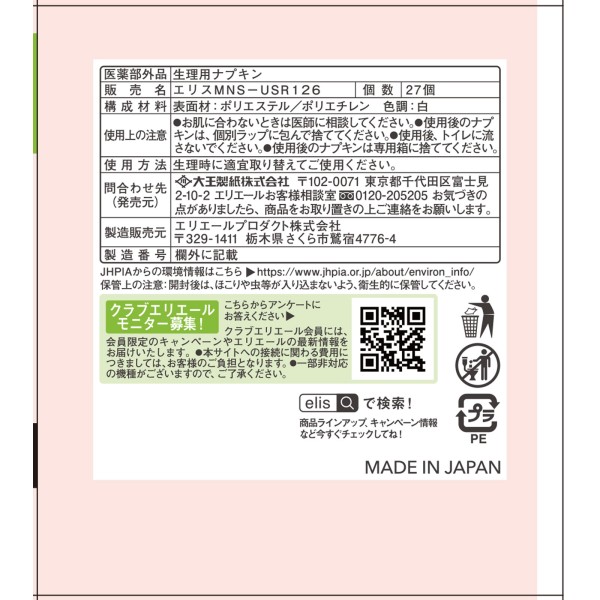 엘리스 소재의 기분 루나피트 초슬림 (많은 낮~보통날용) 날개없는 27매 다이오제지 > 엘리스 소하다노 기모치