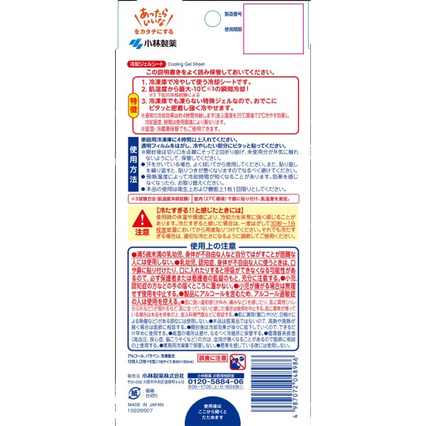 냉동고용 해열 쿨링시트 스트롱 성인용 12매 고바야시제약 > 열 냉각 시트