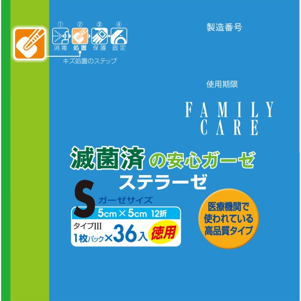 패밀리케어 스텔라제 S 36매 백십자 > 거즈
