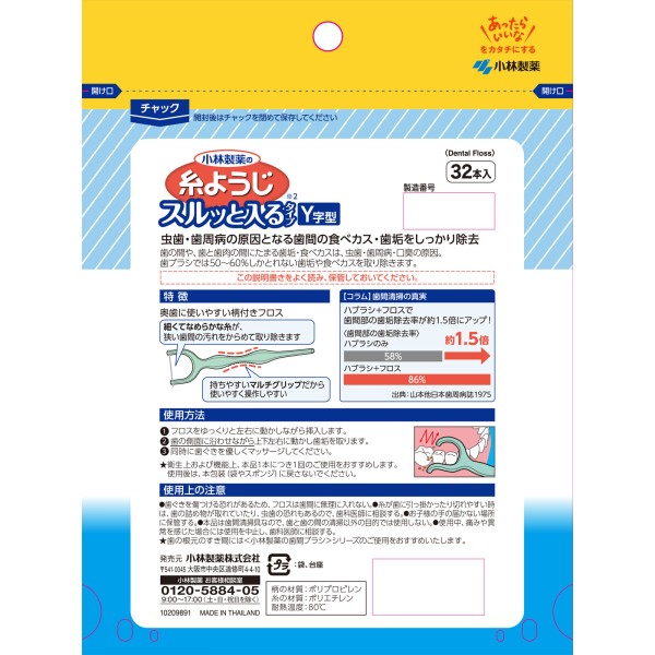 치실 술술 들어가는 타입 Y자형 대용량 32개 고바야시제약 > 치실