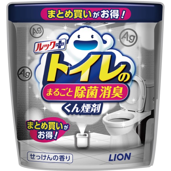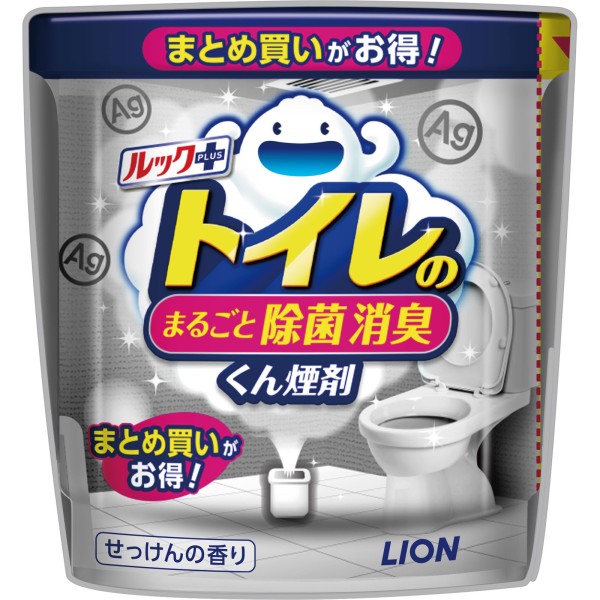ルックプラス トイレのまるごと除菌消臭くん煙剤 掃除してもいつのまにか戻ってくるあのニオイ・・・ トイレに入った時に、ガッカリしたことありませんか? 実は、タンク裏や床のすみのホコリ、天井の換気扇など、掃除がゆきとどかないところに潜むニオイ菌が、尿ハネなどの汚れを分解して、イヤなニオイ成分を生み出しているのです。 だから、トイレまるごと除菌! Ag 銀イオン 除菌成分は身近な銀イオン 銀(Ag)は、食器や制汗剤など、身近で広く使われる成分なので安心です。 壁やタンク裏の汚れやホコリに潜むニオイ菌まで トイレまるごと徹底除菌*! *すべての菌を除菌するわけではありません。 *銀イオンを含む煙によるものです。 お掃除の仕上げに・来客前にも 水を入れてポンと置くだけ!