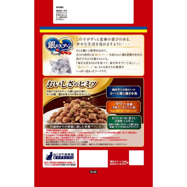 お魚のうまみたっぷり。かつお節・挽き小魚入りの豊かなおいしさ。15歳頃からの愛猫に適した栄養バランス