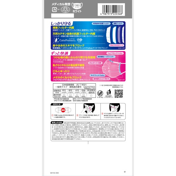 ウイルス飛沫、花粉からしっかり守る、メディカル発想のマスクです。