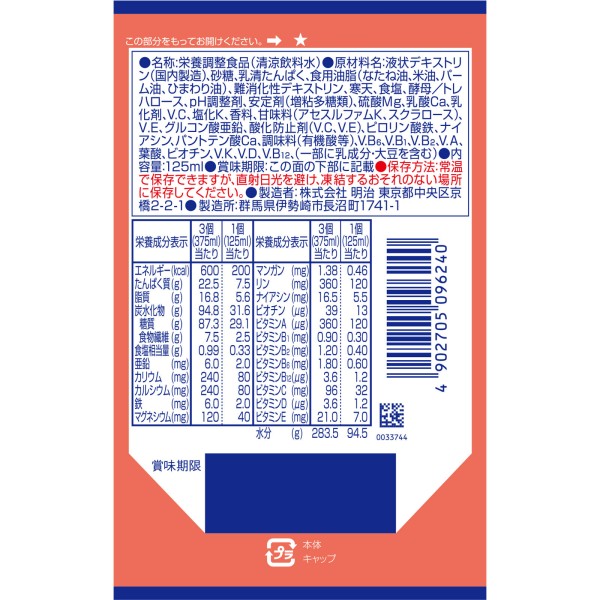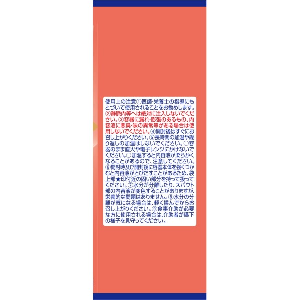 少量高エネルギー/ユニバーサルデザインフード/栄養素/おいしい/選べるおいしさ少量高エネルギー設計(200Kcal/125ml)、1個当たりたんぱく質7.5g、食物繊維2.5g/ユニバーサルデザインフード(UDF)区分の「かまなくてよい」食品形状/体に必要な6大栄養素(たんぱく質、脂質、糖質、食物繊維、10種のビタミン、7種のミネラル)を配合/まろやかでコクがあり、ほどよい甘さ/選べる8種類の味でおいしく栄養補給●食事が十分に摂れない時や、食事のバランスが崩れた時に、食事の代わり、または食事にプラスして飲むことで必要な栄養が補給できる、ゼリータイプの栄養食品。
