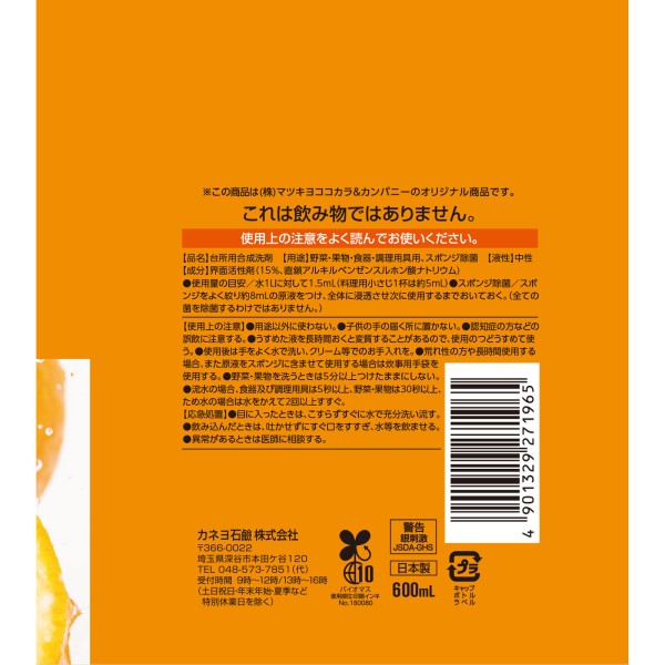 MK 주방용 세제 오렌지 본체 600ml 카네요 비누 > 비농축