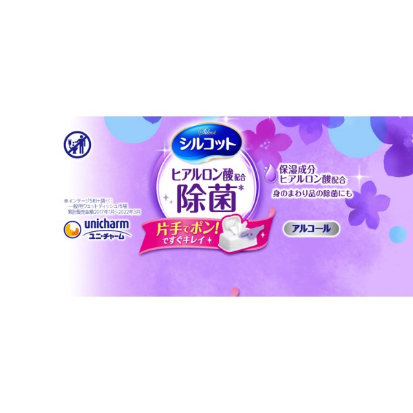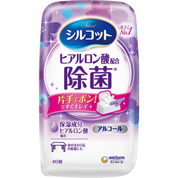 실코트 알코올 제균 웨트 티슈 보습성분 히알루론산 배합 알코올 타입 본체 40매 유니참 > 제균