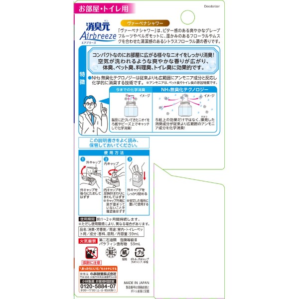 쇼취모토 Aibreeze 버베나 샤워 59ml 고바야시제약 > 놓는 타입