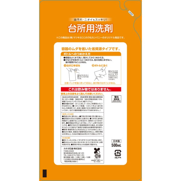 MK 주방용 세제 오렌지 리필 500ml 카네요 비누 > 비농축
