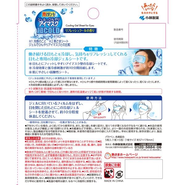 해열 쿨링시트 젤로 시원한 아이마스크 초COLD 강한냉감 5매입 고바야시제약 > 기타