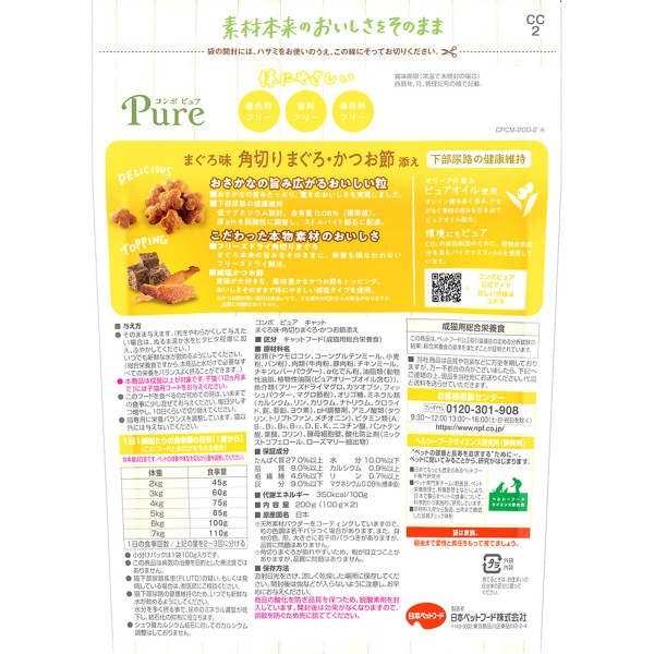 콤보 퓨어 캣 참치맛·각썰기 참치·가쓰오부시 200g 니혼 펫푸드 > 구르메 (성묘용)