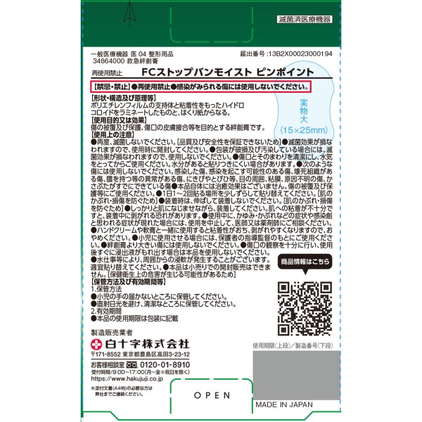 FC 스톱반 모이스트 핀포인트 20매입 백십자 > 구급 밴드(고기능 타입)