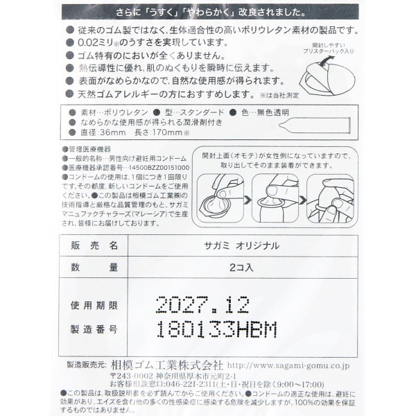 사가미 오리지널 002 2개입 사가미 고무공업 > 휴대