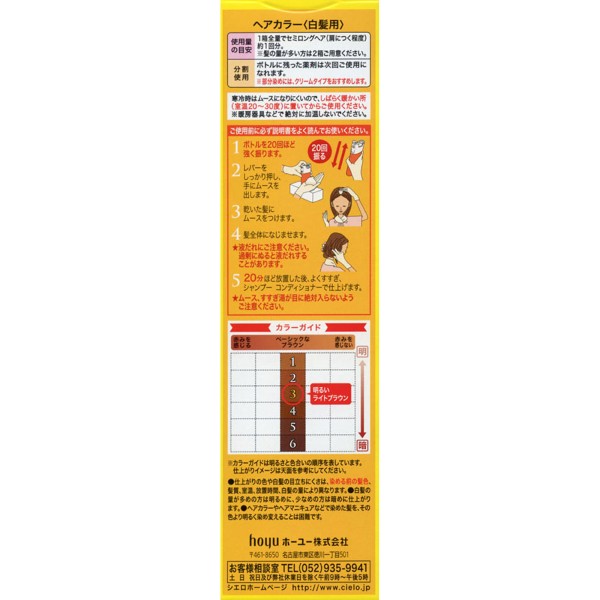 시엘로 무스 컬러 3 밝은 라이트 브라운 50g+50g 호유 > 백발용 폼