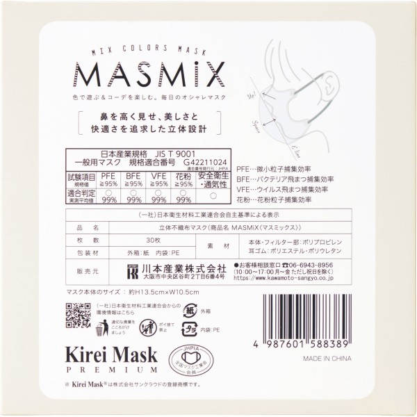 MASMiX 샌드베이지×블랙 30매 가와모토 산업 > 대용량