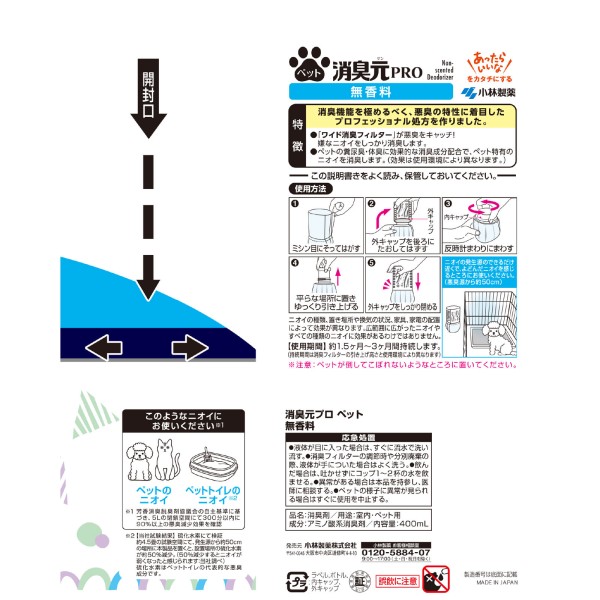쇼취모토 PRO 반려동물 무향 400ml 고바야시제약 > 놓는 타입