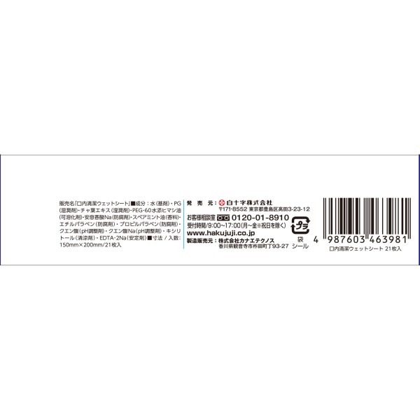 구강 청결 웨트 시트 21매입 백십자 > 물티슈