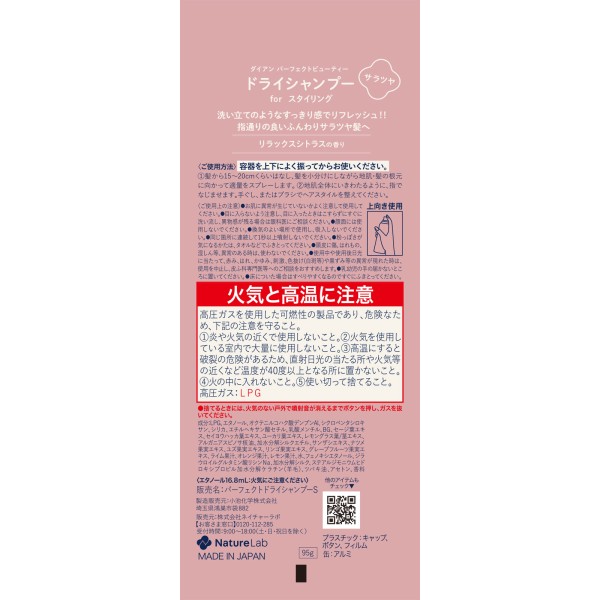 다이앤 퍼펙트 뷰티 드라이 샴푸 매끄럽고 윤기 타입 95g 네이처랩