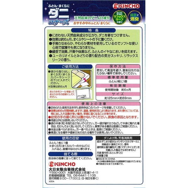 KINCHO 이불·베개에 다니코너즈 진드기 방지 시트 릴랙스 리프향 2매입 다이니혼 제충국 > 기타