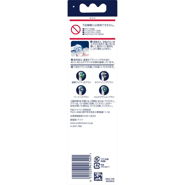 브라운 오랄B 부드러운 초극세모 브러시 EB60-4HB 4개입 BRAUN