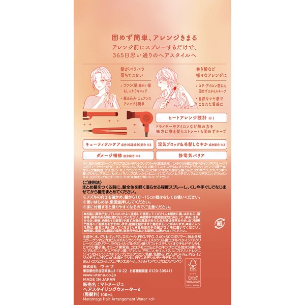 마토메쥬 모은머리 어레인지 워터 100ml 우테나 > 기타 헤어 워터