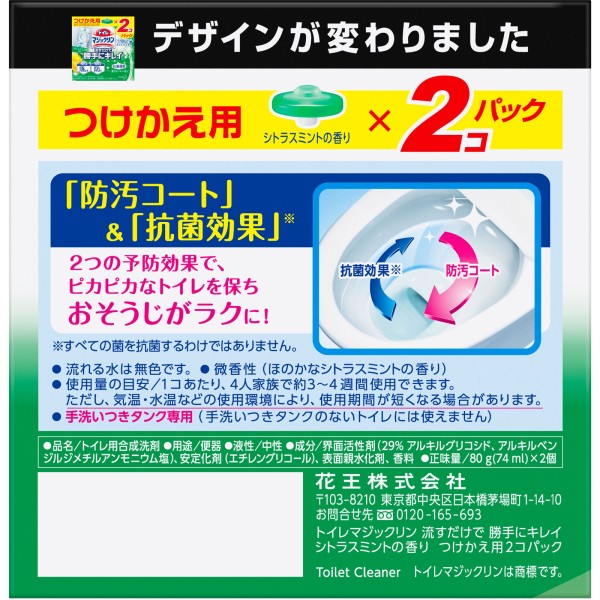 화장실 매직 클린 흘러내리기만 해도 자동으로 깨끗 시트러스 민트향 교체 리필용 160g 카오 > 오토 타입